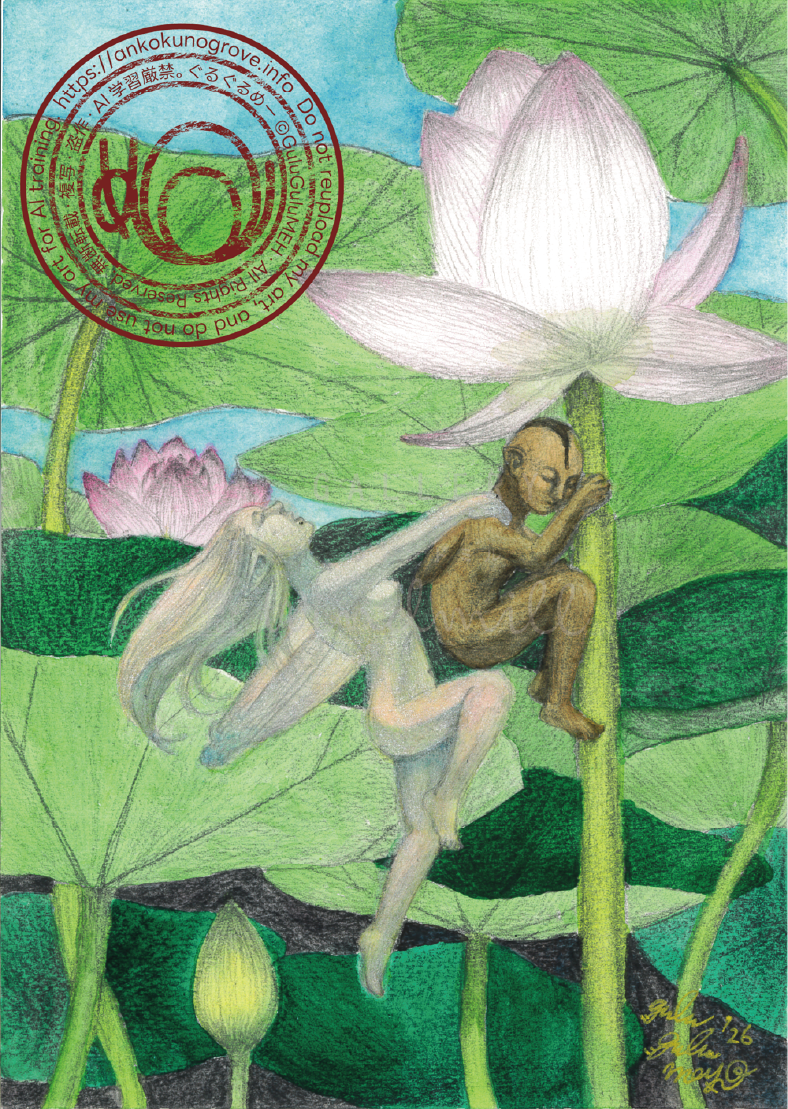 ぐるぐるめー「蜻蛉の羽化」(Emergence of a dragonfly)