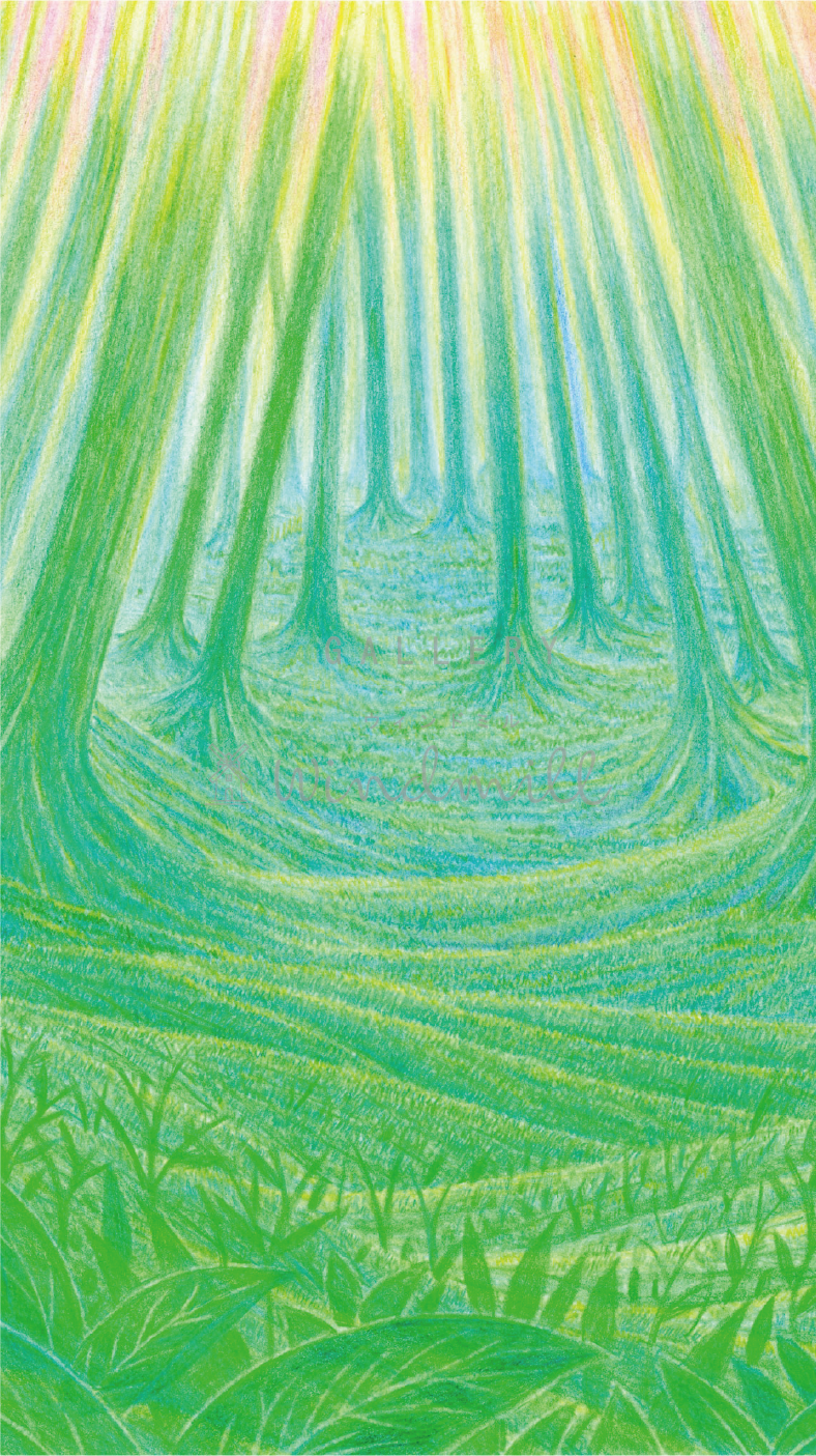 3冊目の詩画集の目次背景用に描いた作品で、文字のじゃまにならないようフラットだけど奥行きがあるように描いた作品。