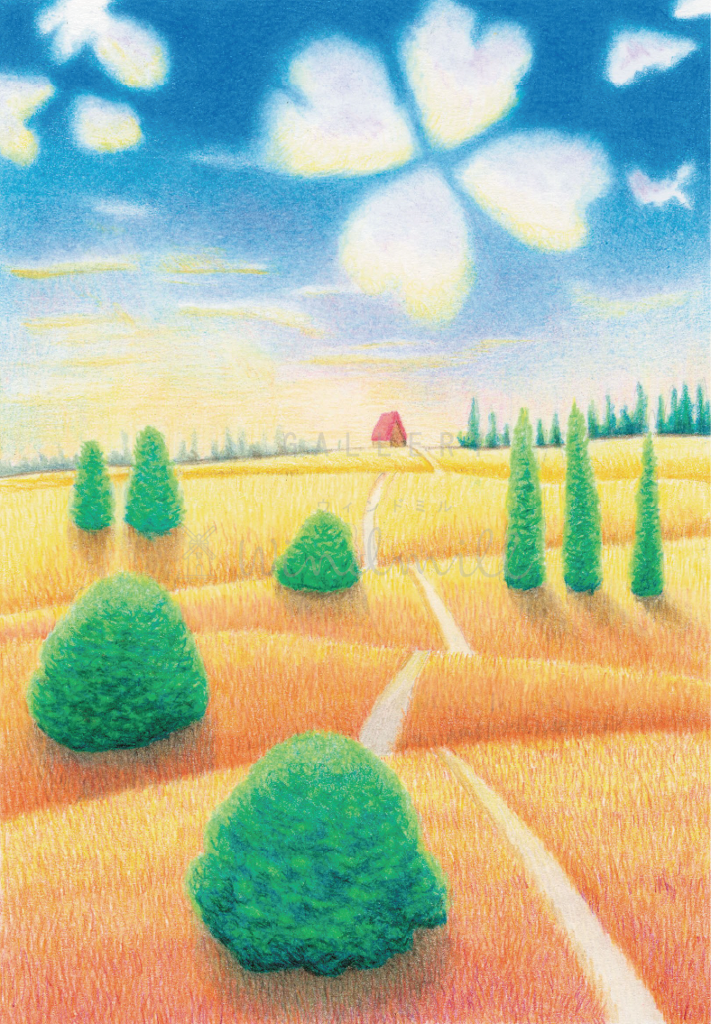 今回展示でもっとも遡った過去作。当時は空に浮かぶ四つ葉のクローバー型の雲を描くシリーズがあって、その中の1枚。